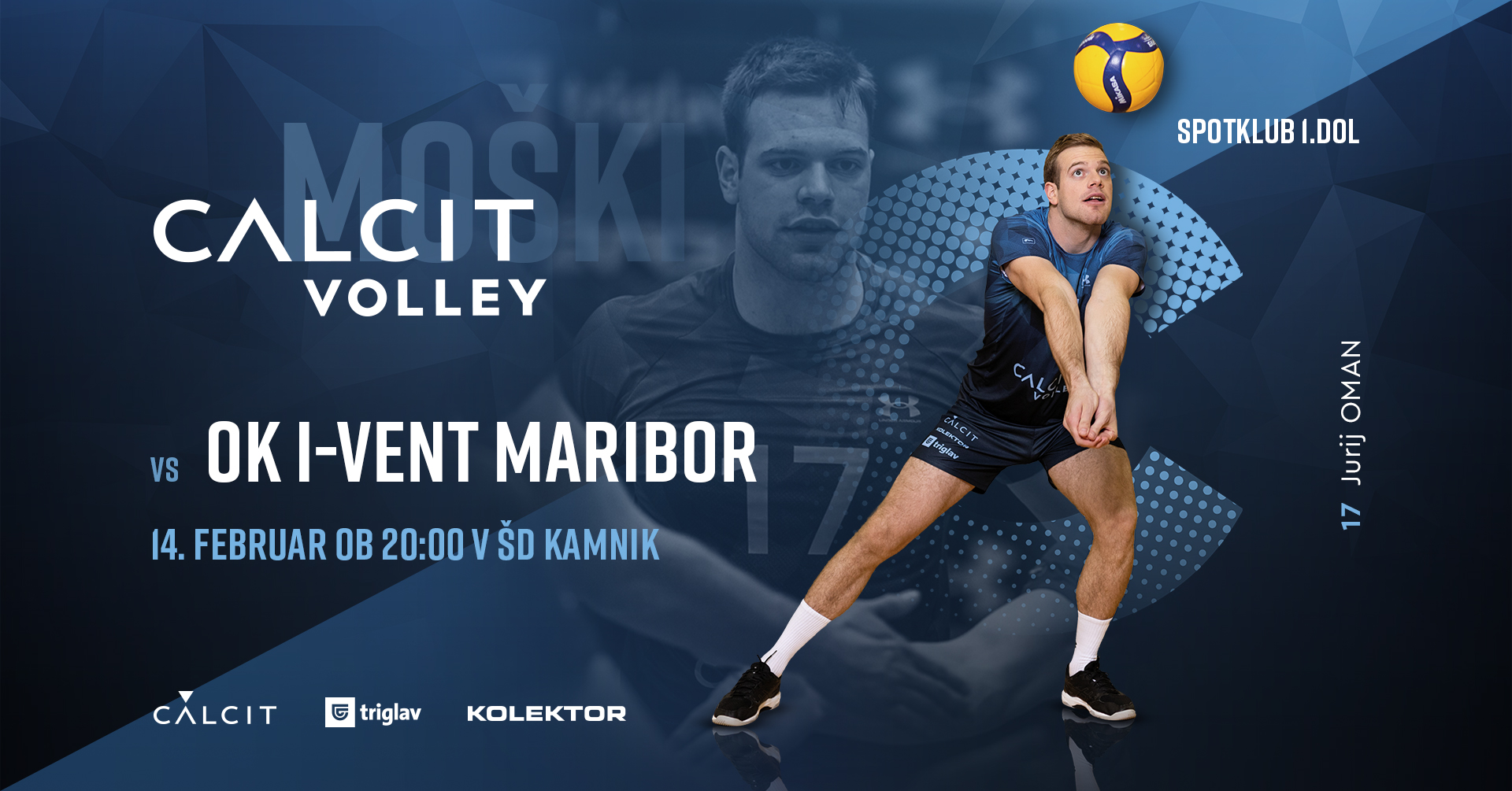 Odbojkarski klub Kamnik 041893036 marketing@calcitvolley.si Cankarjeva 1A, 1241 Kamnikl Domov Koledar prireditev Calcit Volley (m) vs OK i-Vent Maribor 14. 2. 2026, 20.00 2026-02-02T19:28:50+01:00 CALCIT VOLLEY vs OK I-VENT MARIBOR (17. krog SPORTKLUB prve odbojkarske lige - moški)