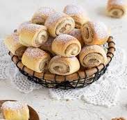jedi. Kvašeni pečeni štrukelci z različnimi nadevi za potice, rogljički z