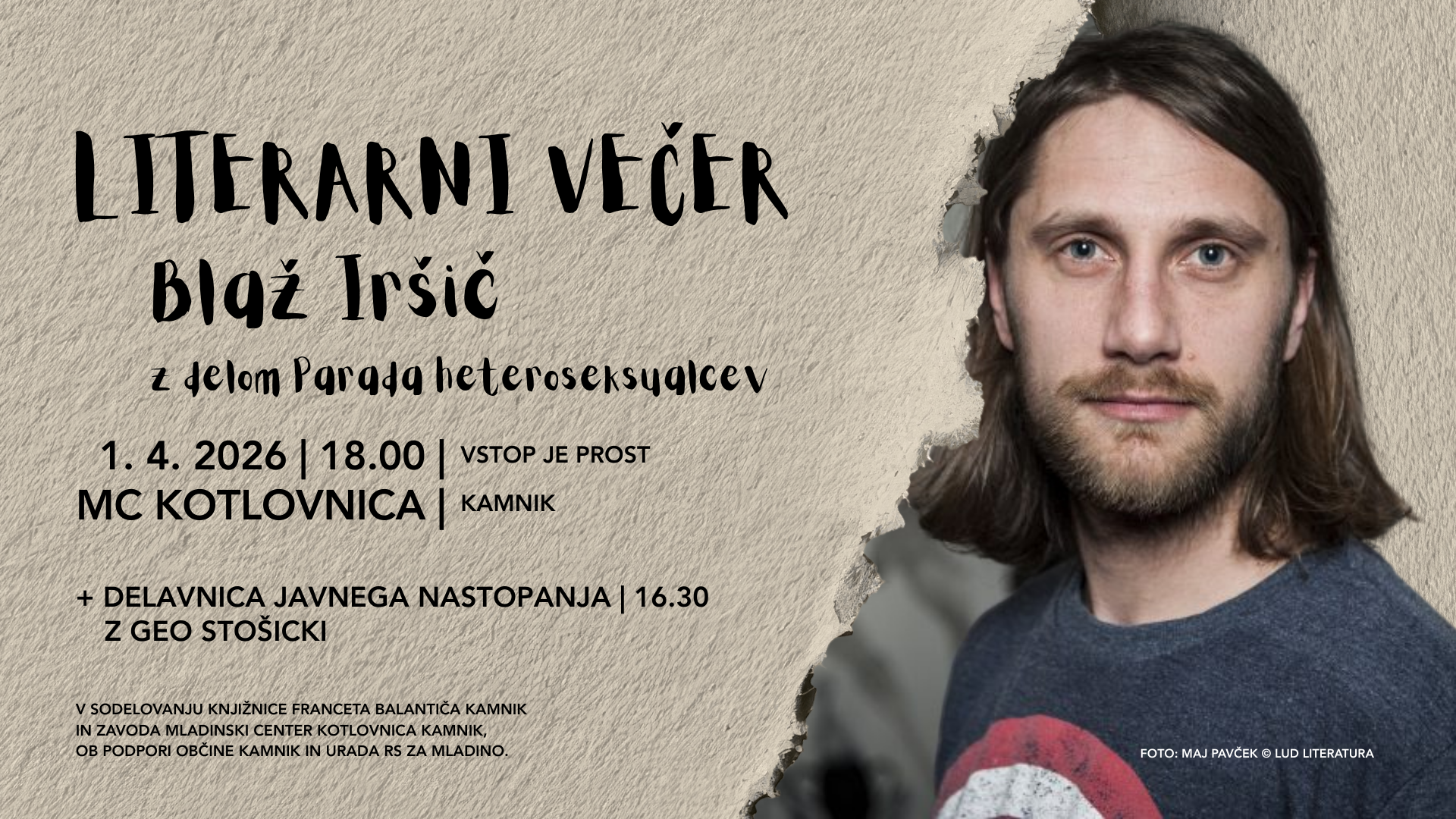 Literarni večer: Blaž Iršič | zbirka Parada heteroseksualcev