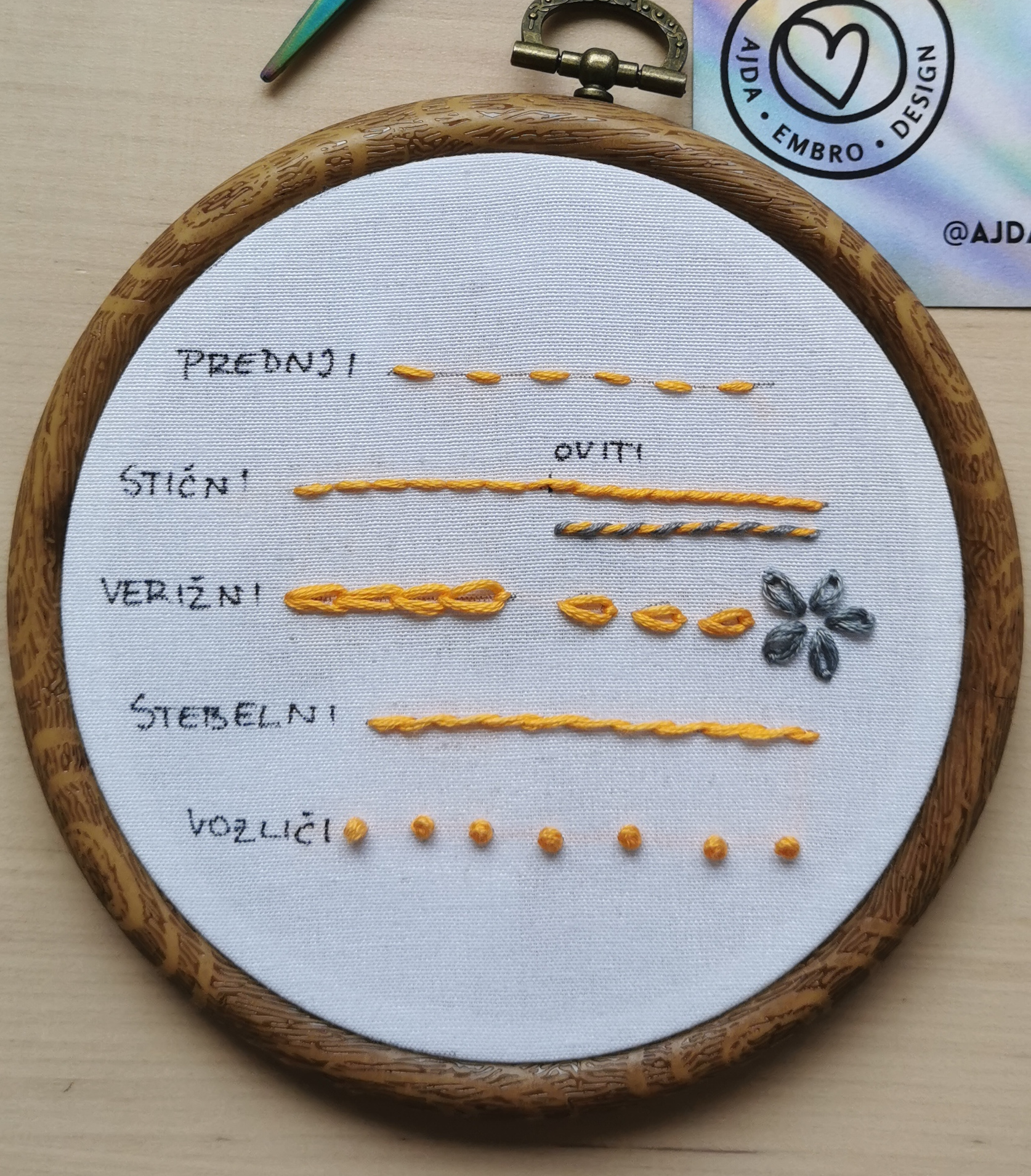 delavnici se boste naučili: prednji vbod, stični vbod, oviti stični vbod,