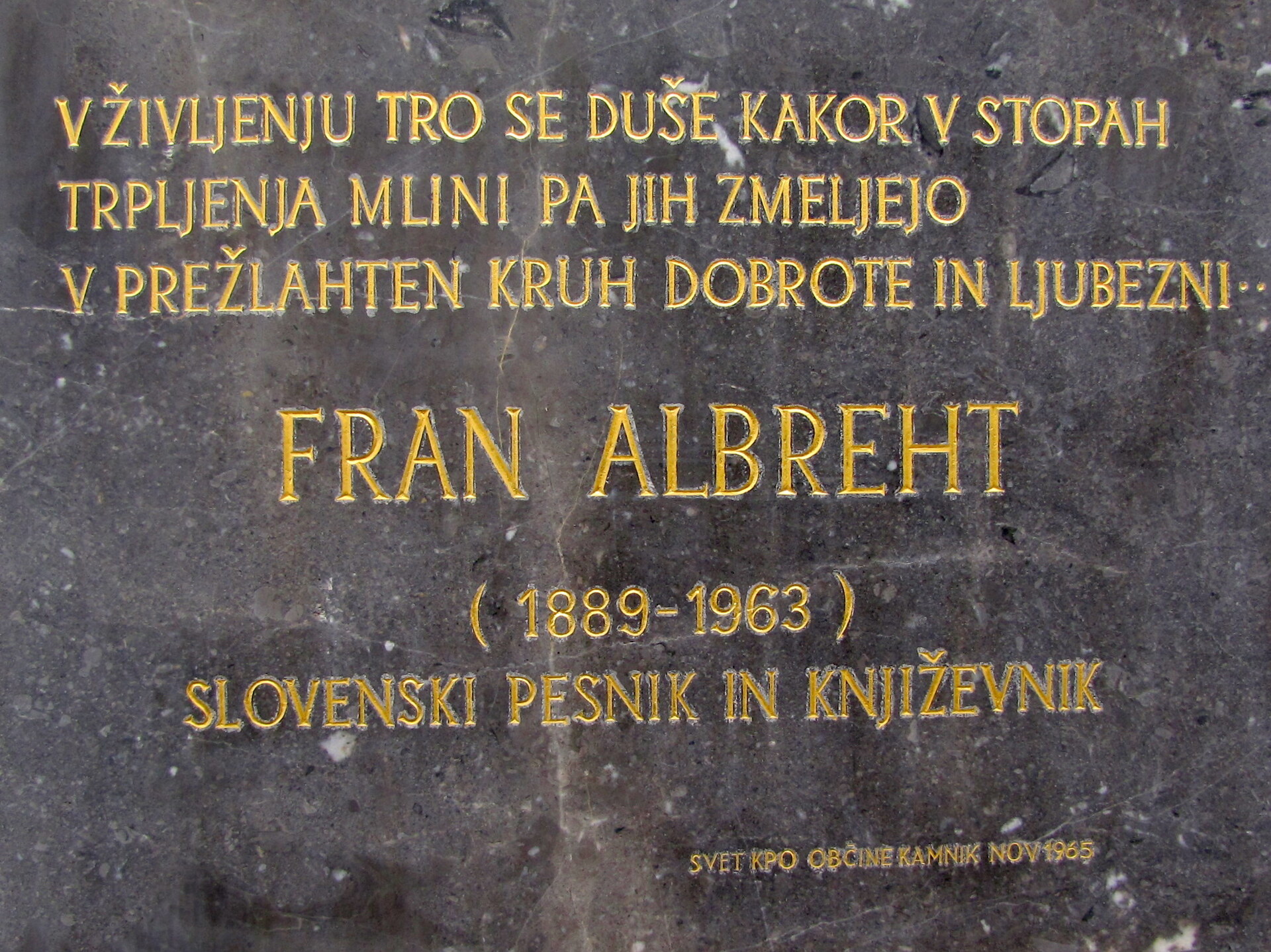 Albrehta – slovenskega pesnika, prevajalca in politika. Pot nadaljujemo vse do