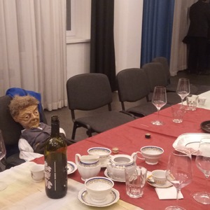 Redko kdaj se zgodi, da se abonenti Maistrovega abonmaja znajdemo na predstavi v Klubu kulturnega doma v Kamniku, še redkeje, če se znajdemo tam za skupno mizo, pogrnjeno z različnimi narezki v družbi znanih kulturnikov. Prav to se je zgodilo 5. in 7. novembra v dveh večernih terminih, ko smo prisostvovali namizni družinski drami z naslovom Kdo je okužil dedka?, ki so jo zasnovali člani Kulturno-umetniškega društva LJUD, znani po uličnih predstavah Invazija in Pocestnica, s katerima so pred leti gostovali v Kamniku. Tokrat so se odločili, da se umaknejo z ulic v zavetje kulturnega hrama in nas s kvalitetnim vinom ter prigrizki omehčajo do te mere, da izpovemo resnične zgodbe, ki so se nam dogajale v času korone. Marsikdo med nami je namreč tekel pred trgovkami in redarji, ker si ni pravočasno nadel maske ali pokazal PCR izvida, recitiral poštevanko ali Podvodnega moža, da bi se mu po 12. letu za hip odprla vrata konzumerizma, trpel družinsko izolacijo, ker je brez ustrezne napovedi in priprav obiskal babico ali dedka, se iz šole in službe odpravil domov še preden se je delovni dan začel, ker je bil test za korono pozitiven in še bi lahko naštevali… Obdobje korone je razkrilo številne frustracije in travme, ki so znotraj družin že tlele pod navidezno mirnim površjem, a jih je epidemija Covida-19 ustrezno prignala na razburkano gladino, kjer so se razbohotile v vsej svoji veličini. Člani KUD-a Ljud so zadnja leta pridno beležili zgodbe prijateljev, znancev, obiskovalcev predstav in mimoidočih, ter jih s pomočjo antropologinje Sanje Žmavc analizirali ter “predelali” v izviren tekst, ki na duhovit način opisuje dostikrat absurdne situacije, ki so pripeljale do tragikomičnih dialogov in iskanja diplomatskih rešitev, pri katerih sta si volk in ovca izmenično podajala svoja oblačila.