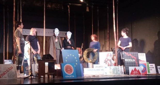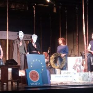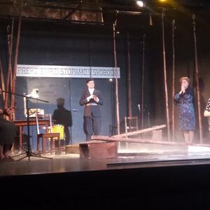 Zadnji četrtek v februarju smo si abonenti Maistrovega abonmaja v Domu kulture pogledali predstavo Juriš Slovenskega ljudskega gledališča Celje.