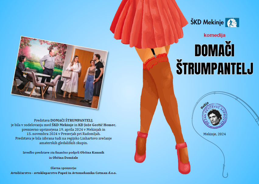 Domači štrumpantelj je humorna zgodba, ki govori o običajni družini izpod Kamniško-Savinjskih Alp. V ospredju so družinska razmerja treh generacij, ki jih zapletajo vznemirljive želje, ki pa so družbeno nesprejemljive, a zato nič manj vsakdanje… Poleg teh dveh ravni je tu še osebnostni razvoj posameznika, ki skozi posebne izkušnje raste in se spreminja. V teh situacijah se lahko zlahka prepozna vsak od nas. Gre za univerzalna človeška hotenja in ravnanja. Skratka, zgodba poteka na več ravneh hkrati in na duhovit način odstira običajne tabuje. Vsekakor verjamem, da gre za žlahtno komedijo, ki se ogne situacijski komiki in sledi značajski duhovitosti likov.
