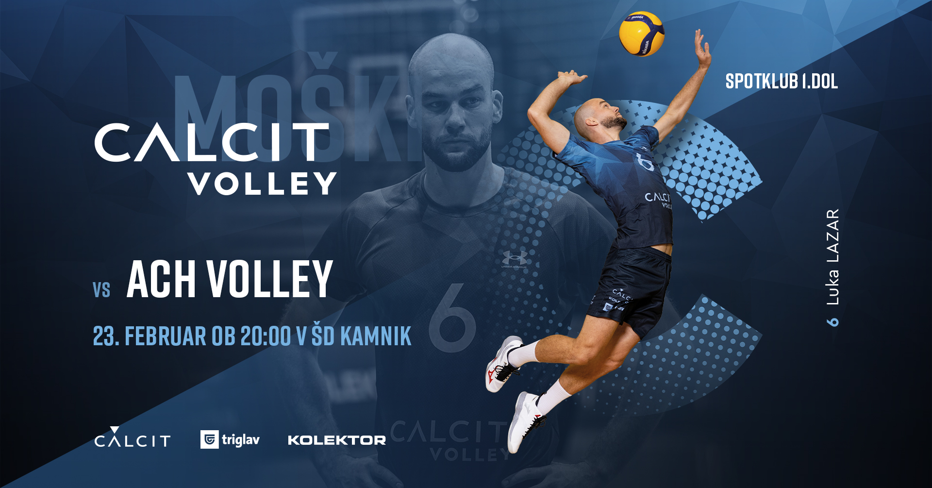 Odbojkarski klub Kamnik 041893036 marketing@calcitvolley.si Cankarjeva 1A, 1241 Kamnikl Domov Koledar prireditev Calcit Volley vs ACH Volley Ljubljana 23. 2. 2026, 20.00 2026-02-16T11:20:40+01:00 20. krog SPORTKLUB prve odbojkarske lige - moški