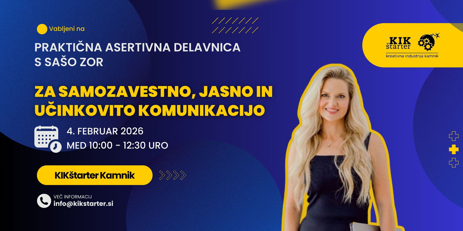 Po spodbudnem odzivu na predavanje »Moč asertivnosti za gradnjo odnosov in rezultatov s Sašo Zor« nadaljujemo s praktično delavnico, namenjeno vsem, ki želite osvojiti konkretna orodja asertivne komunikacije in jih hitro prenesti v svoje vsakodnevne situacije – osebne in profesionalne.