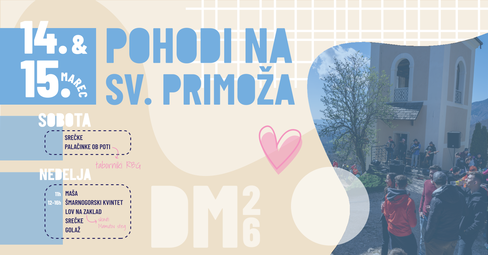 V soboto, 14., in v nedeljo, 15. marca, ste vabljeni, da se pridružite dobrodelnemu pohodu na Svetega Primoža (v primeru slabega vremena bo dogodek prestavljen). 🥾