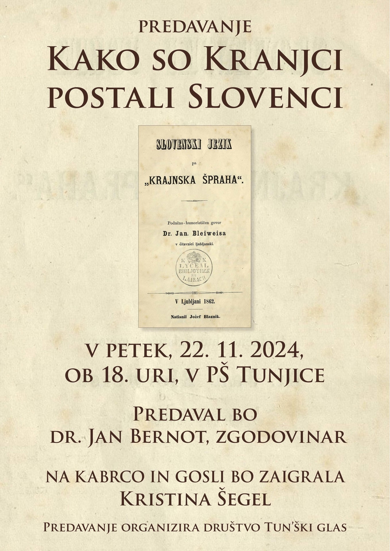 V predavanju se bomo skušali ozreti na proces izginjanja kranjske in uveljavljanja moderne slovenske oznake ter pojasniti, kako so ljudje, ki so še sredi 19. stoletja sebe imenovali Kranjce in svoj jezik kranjski, v le nekaj desetletjih postali Slovenci.
