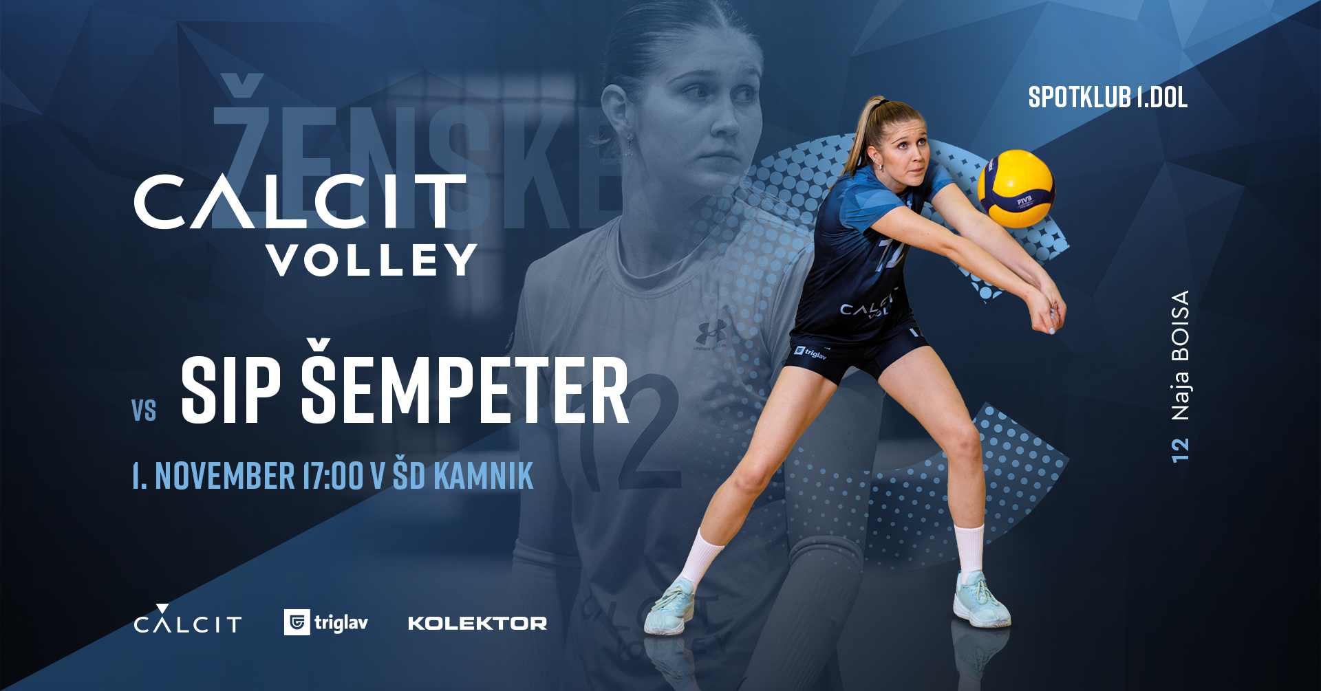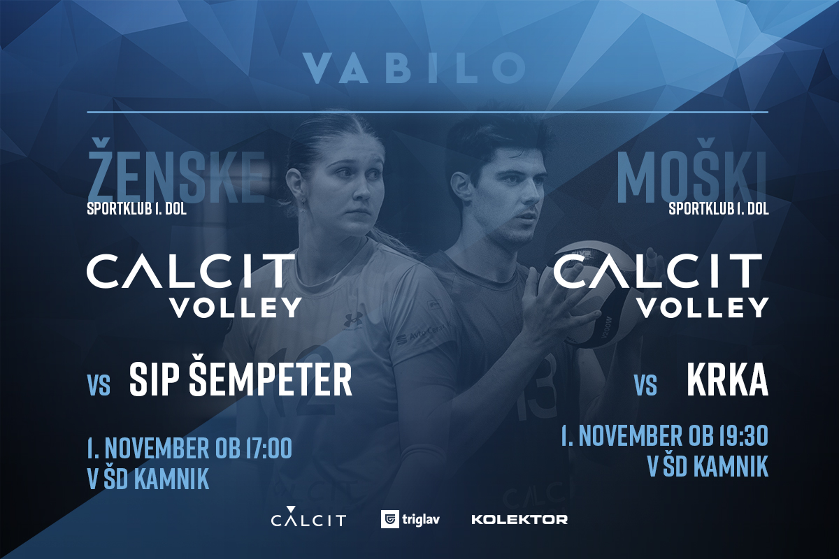 Odbojkarski klub Kamnik 041893036 marketing@calcitvolley.si Cankarjeva 1A, 1241 Kamnikl Domov Koledar prireditev Kamniška odbojkarska supersobota 1. 11. 2025, 17.00 – 22.00 2025-10-21T09:00:21+02:00 >> 17:00, CALCIT VOLLEY (ženske) vs SIP ŠEMPETER>> 19:30, CALCIT VOLLEY (moški) vs KRKA NOVO MESTO