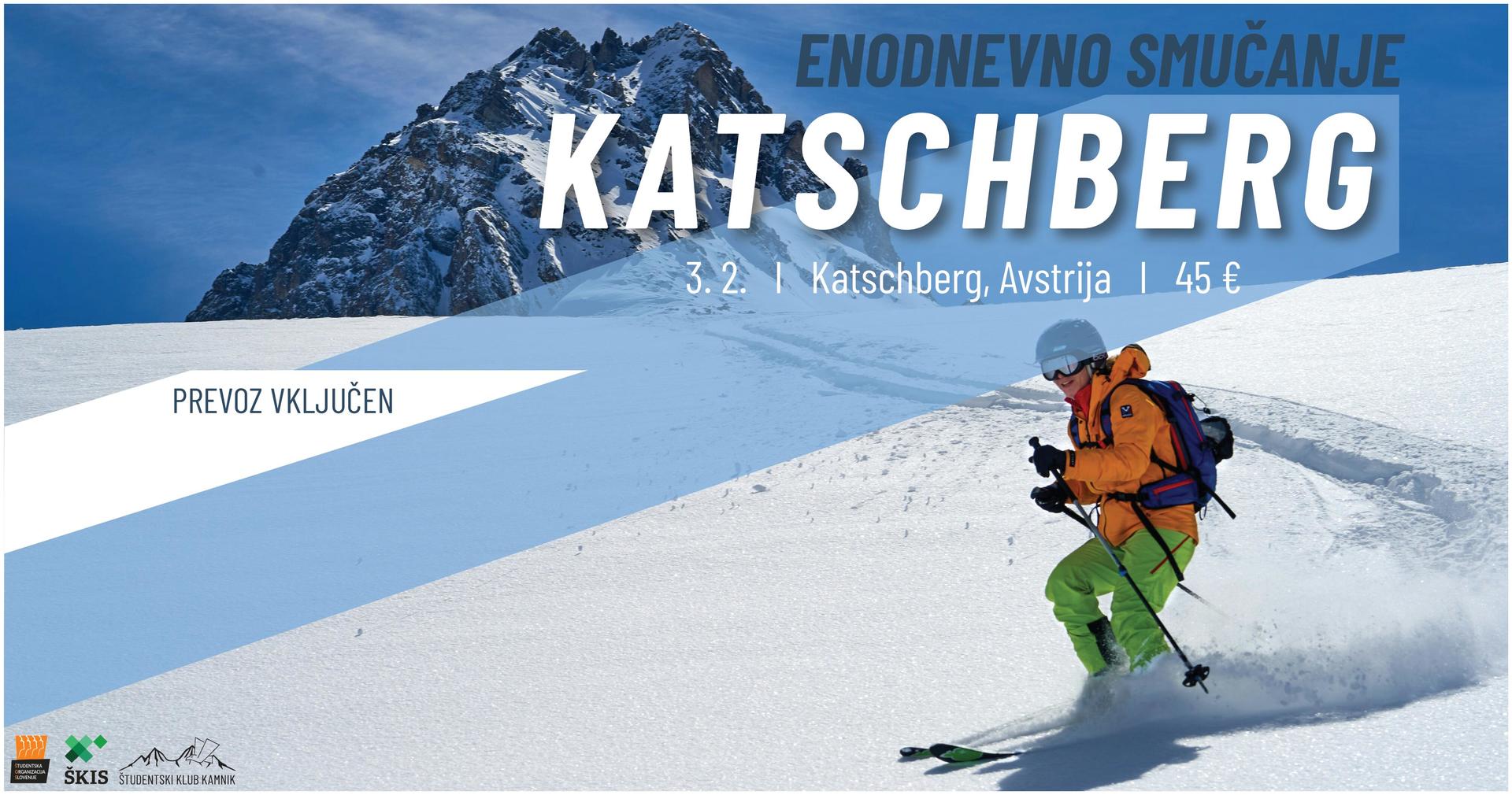 Naslednjo soboto gremo smučat, in to na smučišče Katschberg v Avstriji! Zgodaj zjutraj nas avtobus pobere pred Domom kulture Kamnik, cel dan imamo frej za zabavo na belih strminah, zvečer pa se z istim avtobusom vračamo v Kamnik