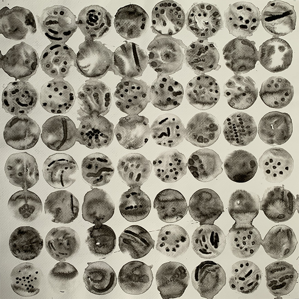 Jerca Šuštar je mlada kamniška slikarka, ki je zaključila študij na Pedagoški fakulteti v Ljubljani. V svojem delu eksperimentira in povezuje področje risbe s slikarstvom in grafiko. V ciklu Sledi se ukvarja z raziskovanjem ponavljajočih se vzorcev v likovnem izrazu in razmišlja o odnosu med obliko in celoto«, ki ji predstavlja tudi kontrast med skupino in individuumom, ki je v sodobni družbi vseprisoten.