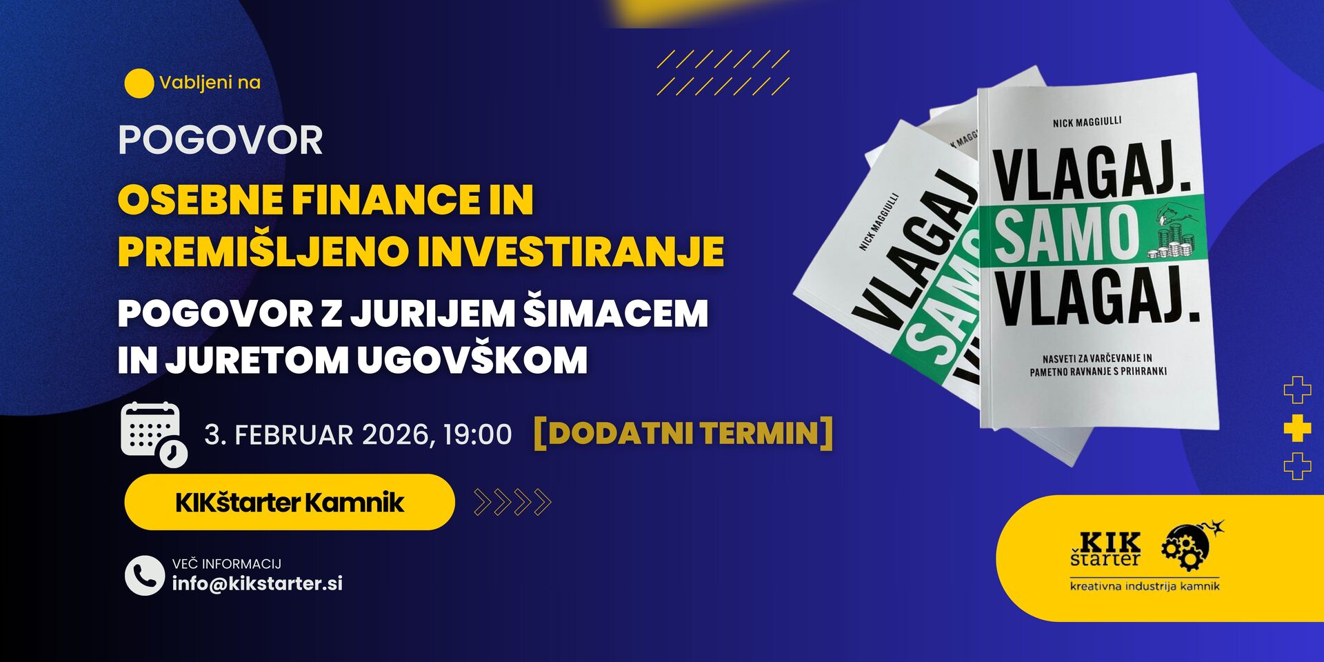 - Pogovor o knjigi »Vlagaj. Samo vlagaj!«, zakaj je nastala in kako vam lahko pomaga izboljšati vaše finančne odločitve.