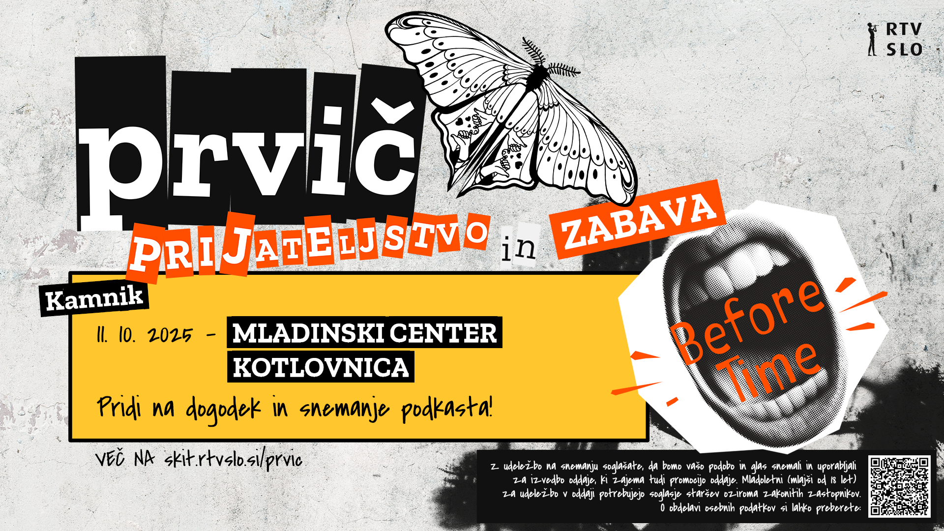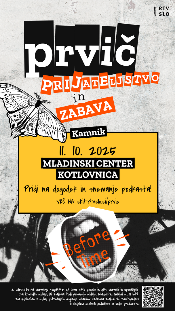 Pridružite se nam na dogodku v živo, ki bo v soboto, 11. oktobra 2025, ob 20.00 v MC Kotlovnica. Na snemanju oddaje Prvič se bo govorilo o »prijateljstvu in zabavi« – o prostorih za druženje in skrbi za prijatelje