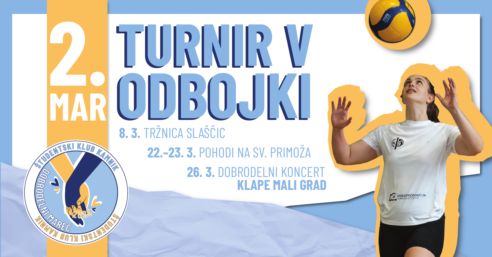 Prvi dogodek DOBRODELNEGA MARCA 2025 bo TURNIR V ODBOJKI!![]()