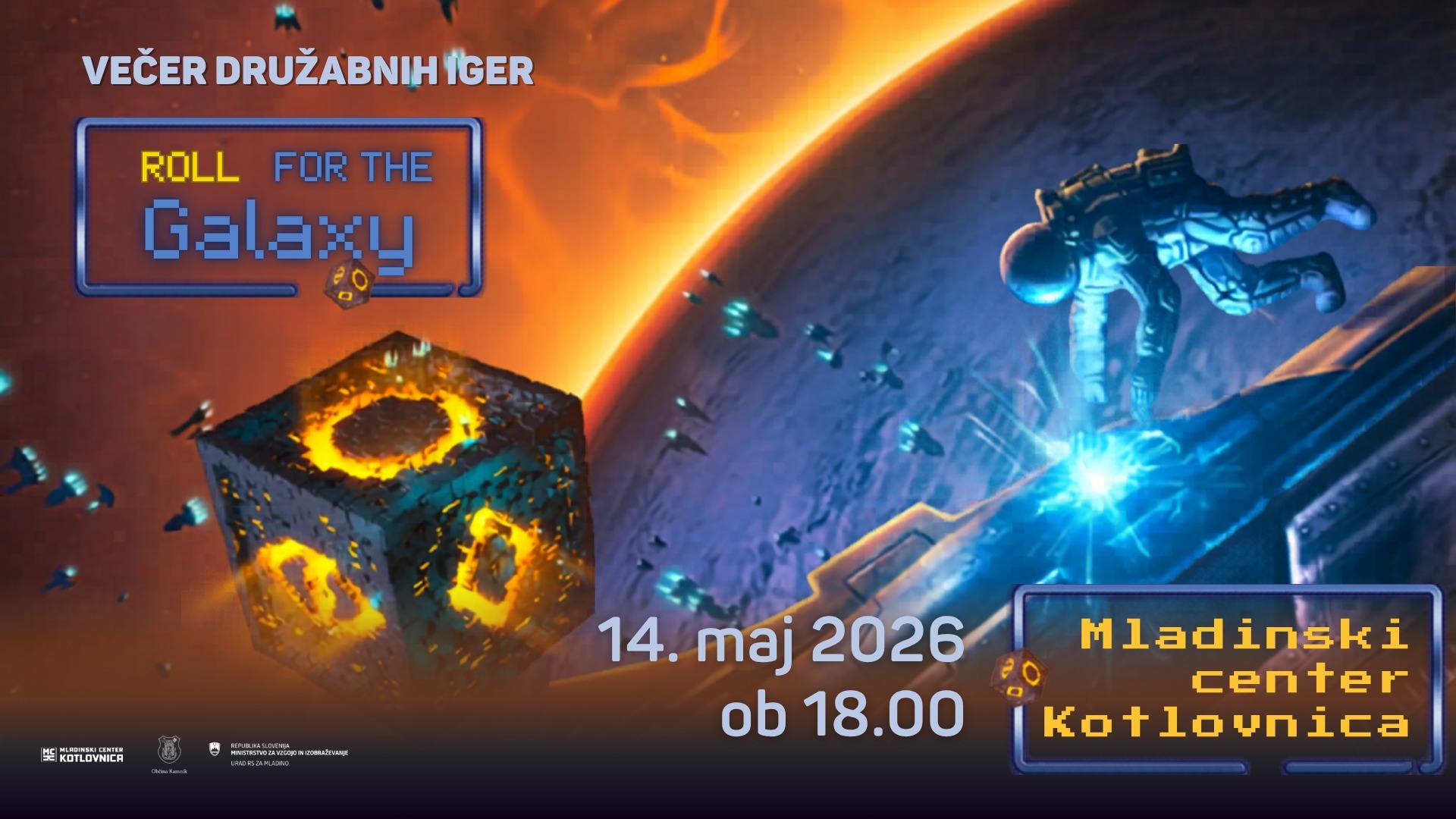 Roll for the Galaxy je igra s kockami za 2–5 igralcev, v kateri gradite vesoljske imperije. Vaše kocke predstavljajo vaše prebivalstvo, ki ga usmerjate v razvoj novih tehnologij, naseljevanje svetov in prevoz blaga. Zmaga igralec, ki najbolje upravlja s svojimi delavci in zgradi najuspešnejši imperij!