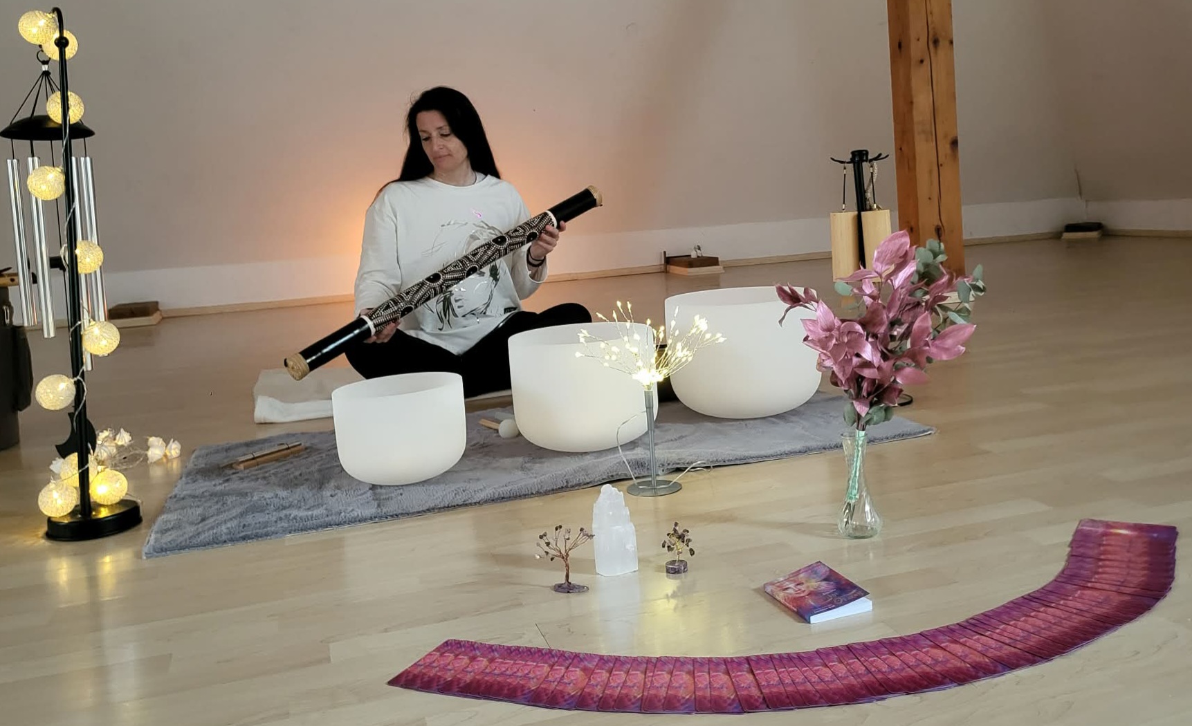 holističnimi inštrumenti - kristalnimi in tibetanskimi posodami, bansuri in