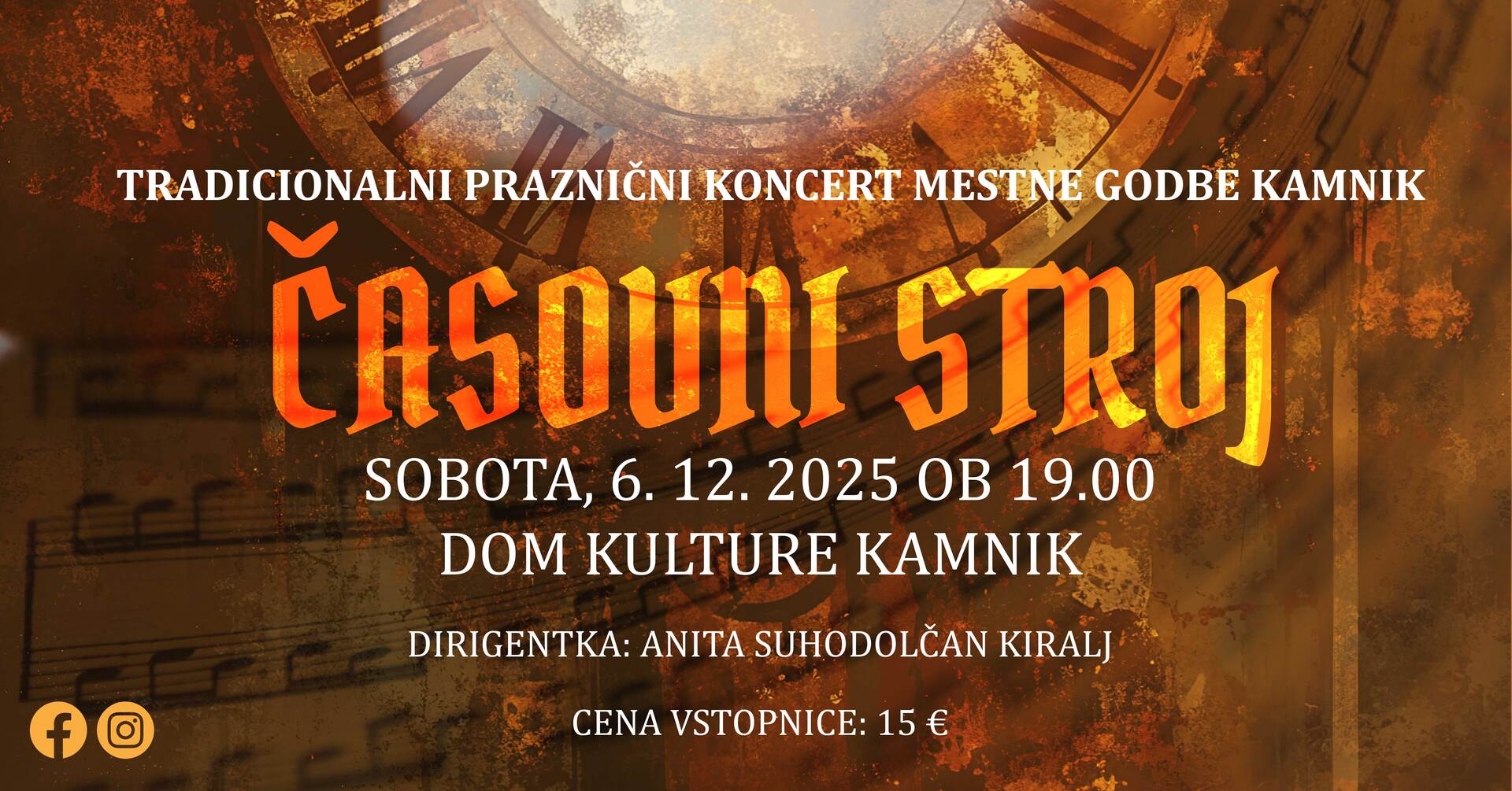 Mestna godba Kamnik vas vabi na Tradicionalni praznični koncert, ki bo letos, v soboto, 6. decembra, ob 19:00 v Veliki dvorani Doma kulture Kamnik.